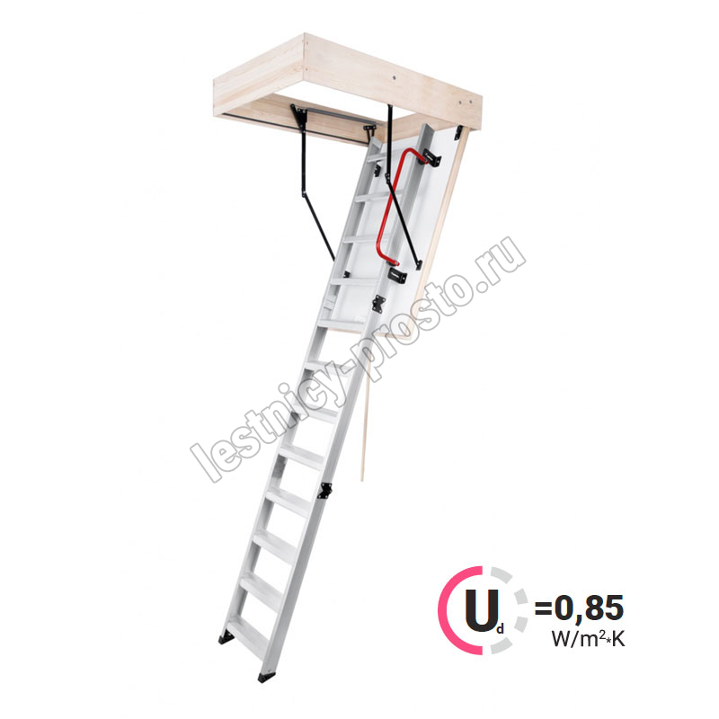 Лестница складная трехсекционная. Модель ALU PROFI идеальна для условий, когда чердак плохо утеплен и требует дополнительной теплоизоляции. Отличительной чертой лестницы ALUPROFI является легкая и чрезвычайно прочная лестница из алюминия высочайшего качества. Лестницы имеют нескользящие ножки, которые идеально прилегают к земле, предотвращают появление царапин на поверхности пола и придают лестнице эстетичный вид после ее резки.