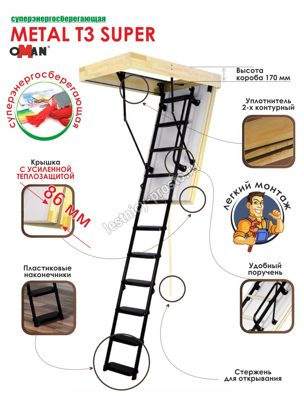 Чердачная лестница OMAN Metal T3 SUPER 60×140 см, h-280 см