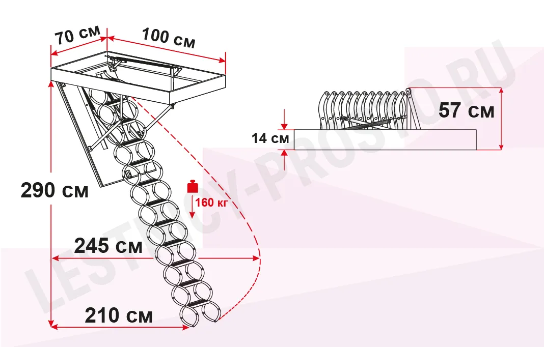 Чердачная лестница с люком OMAN NOZYCOWE TERMO 70х100 см, h-290 см