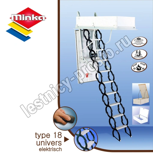 Чердачная ножничная лестница с электроприводом MINKA TYPE 18 UNIVERSE