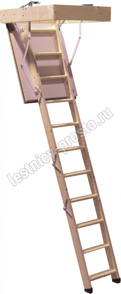 Чердачная лестница трехсекционная из массива ели.