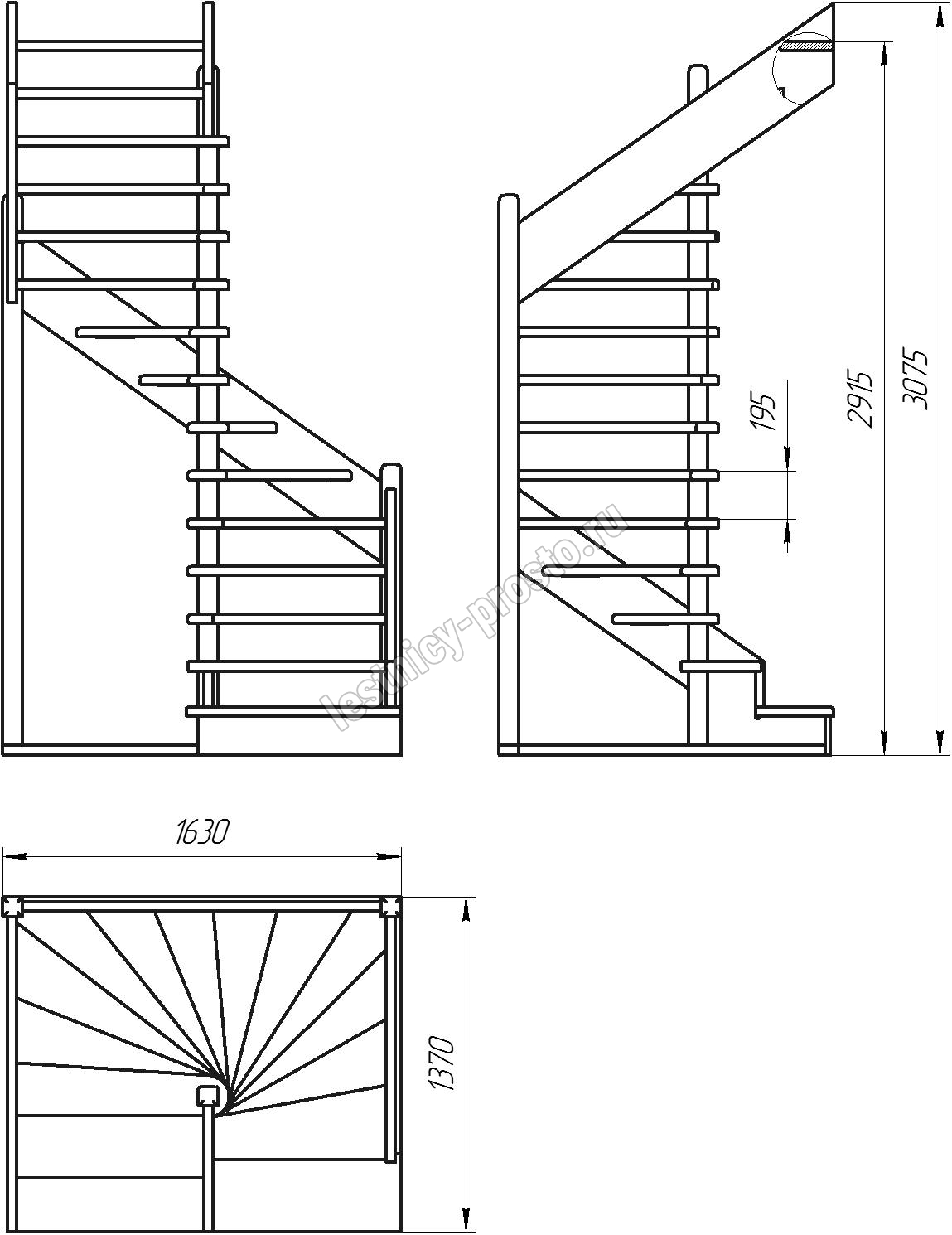 Деревянная межэтажная лестница ЛЕС-01 2915-3075 проем 1630-1370, Лиственница