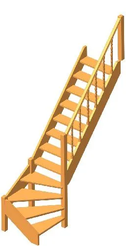 Деревянная межэтажная лестница ЛЕС-07 2470-2675 проем 2360-830, Бук