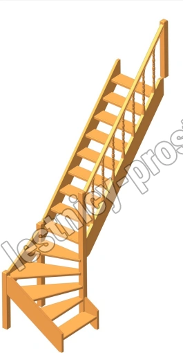 Деревянная межэтажная лестница ЛЕС-07 2880-3085 проем 2550-830, Сосна