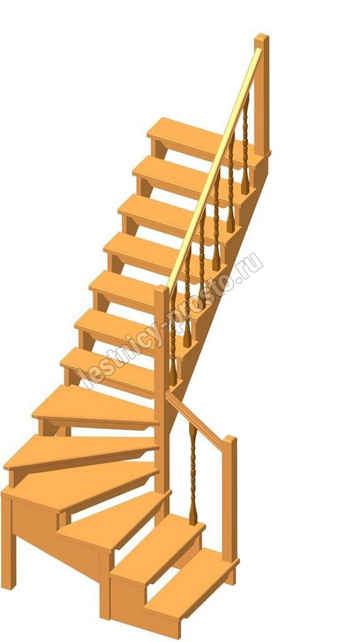 Деревянная межэтажная лестница ЛЕС-09 2690 проем 2405-900, Сосна