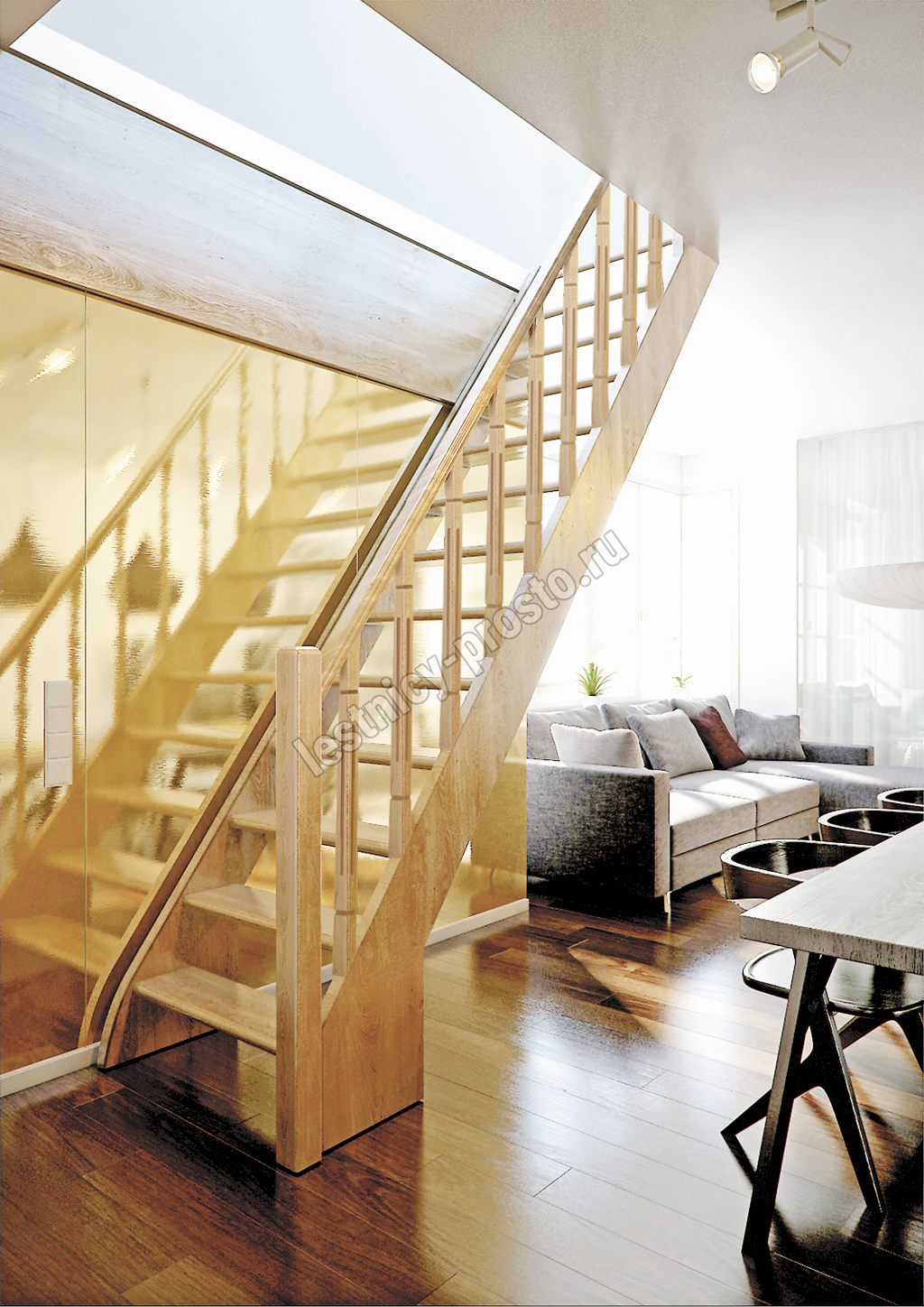 Лестница поставляется в разобранном виде. В базовой комплектации все элементы лестницы без какого-либо покрытия. Типовые ограждения можно заменить на любые другие.