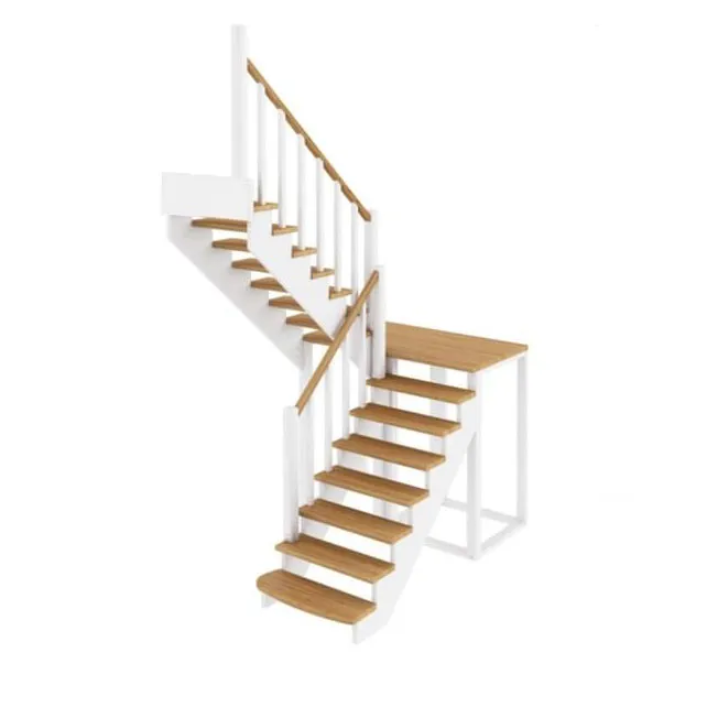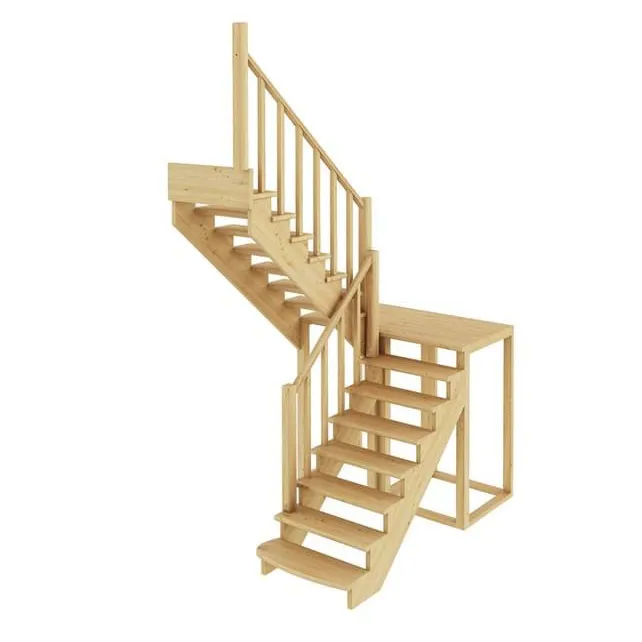 Ступени и поручень лестницы выполнены из бука, остальные элементы из сосны.