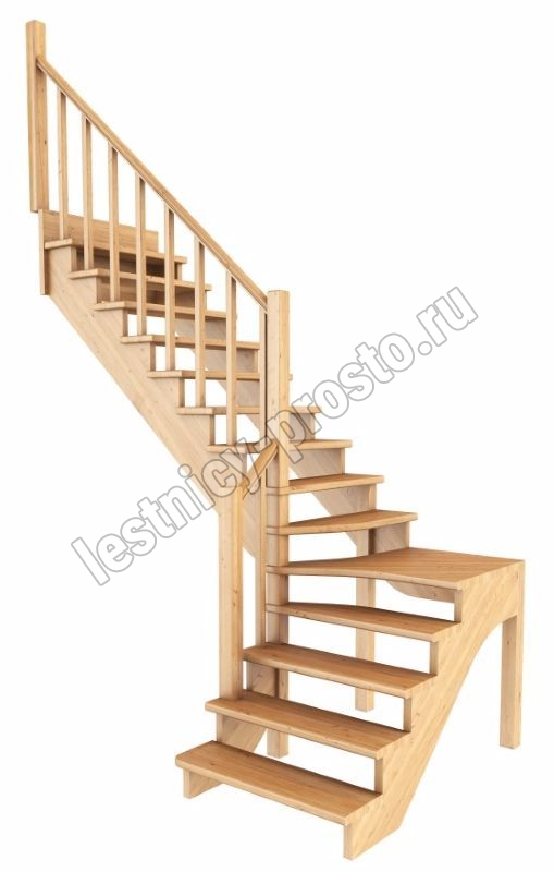 Ступени и поручень лестинцы изготовлены из бука, остальные элементы из сосны. Возможно изготовление данной модели полностью из бука. Базовый комплект включает в себя деревянные элементы лестницы и ограждения без какого-либо покрытия.