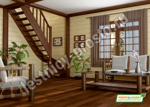 Ступени и поручень лестницы изготовлены из дуба, остальные элементы из сосны.