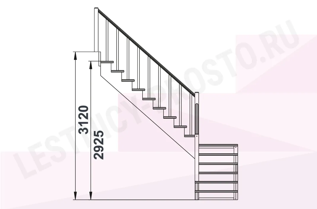 Базовый комплект включает в себя деревянные элементы лестницы и ограждения без какого-либо покрытия.