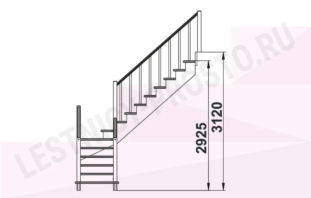 Схема лестницы К-021М с поворотом налево