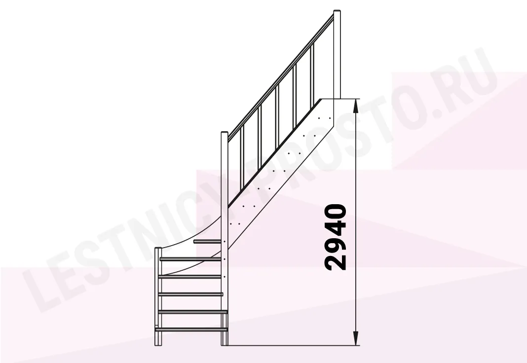 Базовый комплект включает в себя деревянные элементы лестницы с подступёнками и ограждения без какого-либо покрытия.