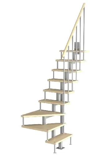 В производстве лестницы ЛС-10м под покраску используется сосна с небольшими изменениями цвета, что практически не влияет на ее механические свойства и почти незаметно при покраске в темные цвета. Базовый комплект включает в себя деревянные элементы лестницы и ограждения без какого-либо покрытия.