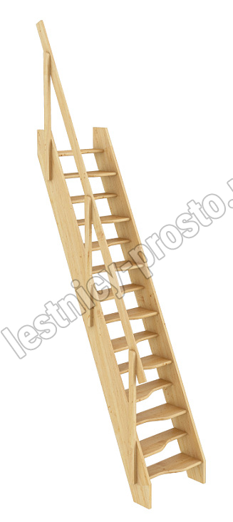 Ступени и поручень лестницы изготовлены из ясеня, остальные элементы из сосны.