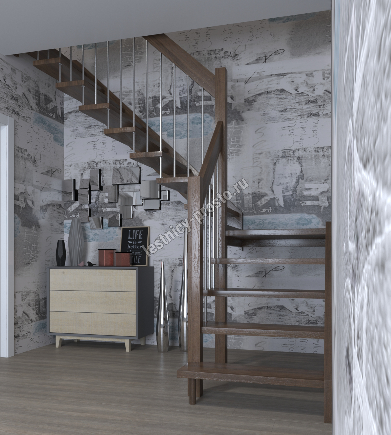 Лестница Prosto Console г-образная забежная бук, h270 см (11 ступеней)