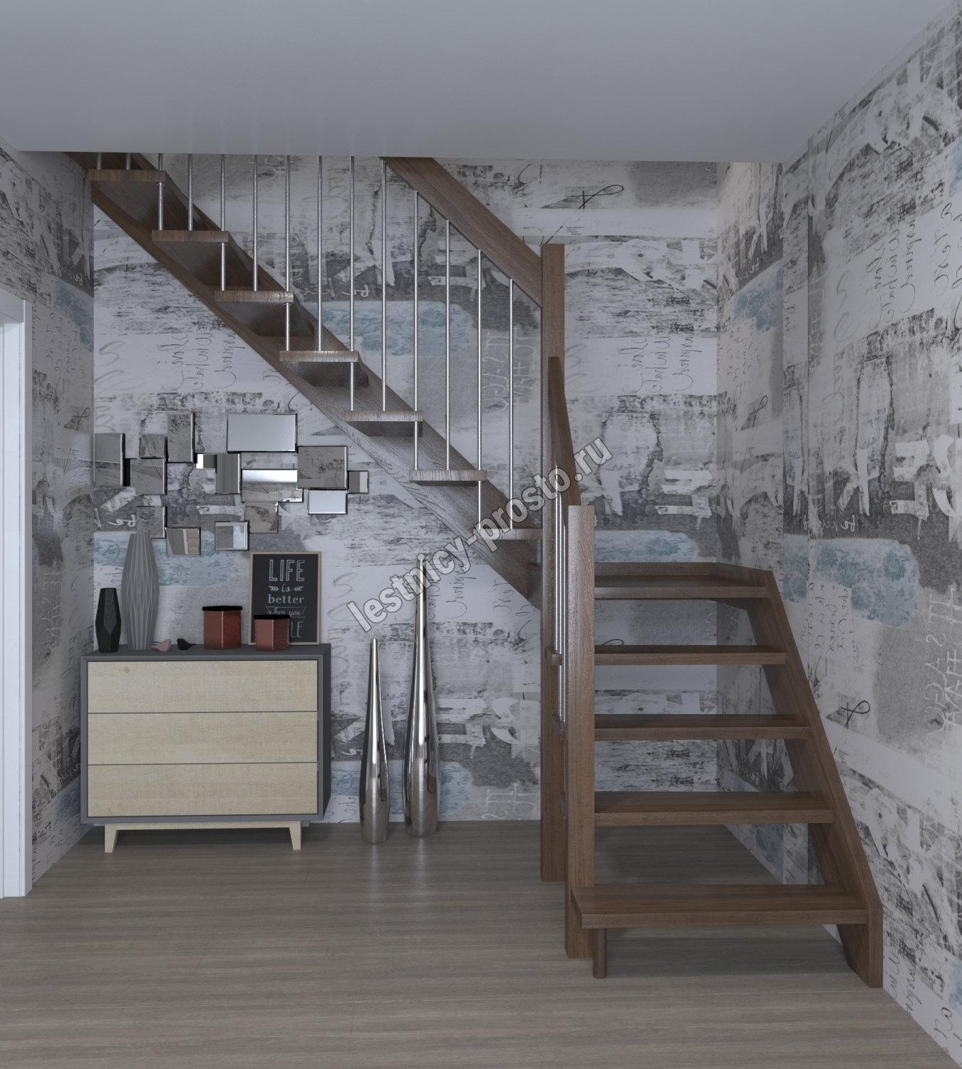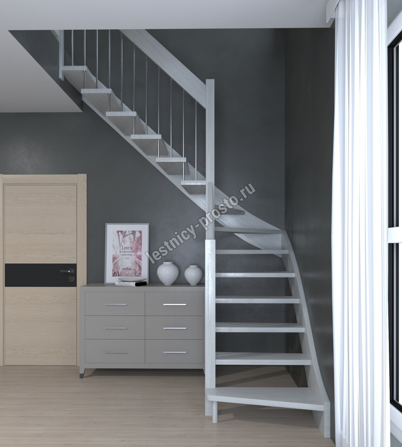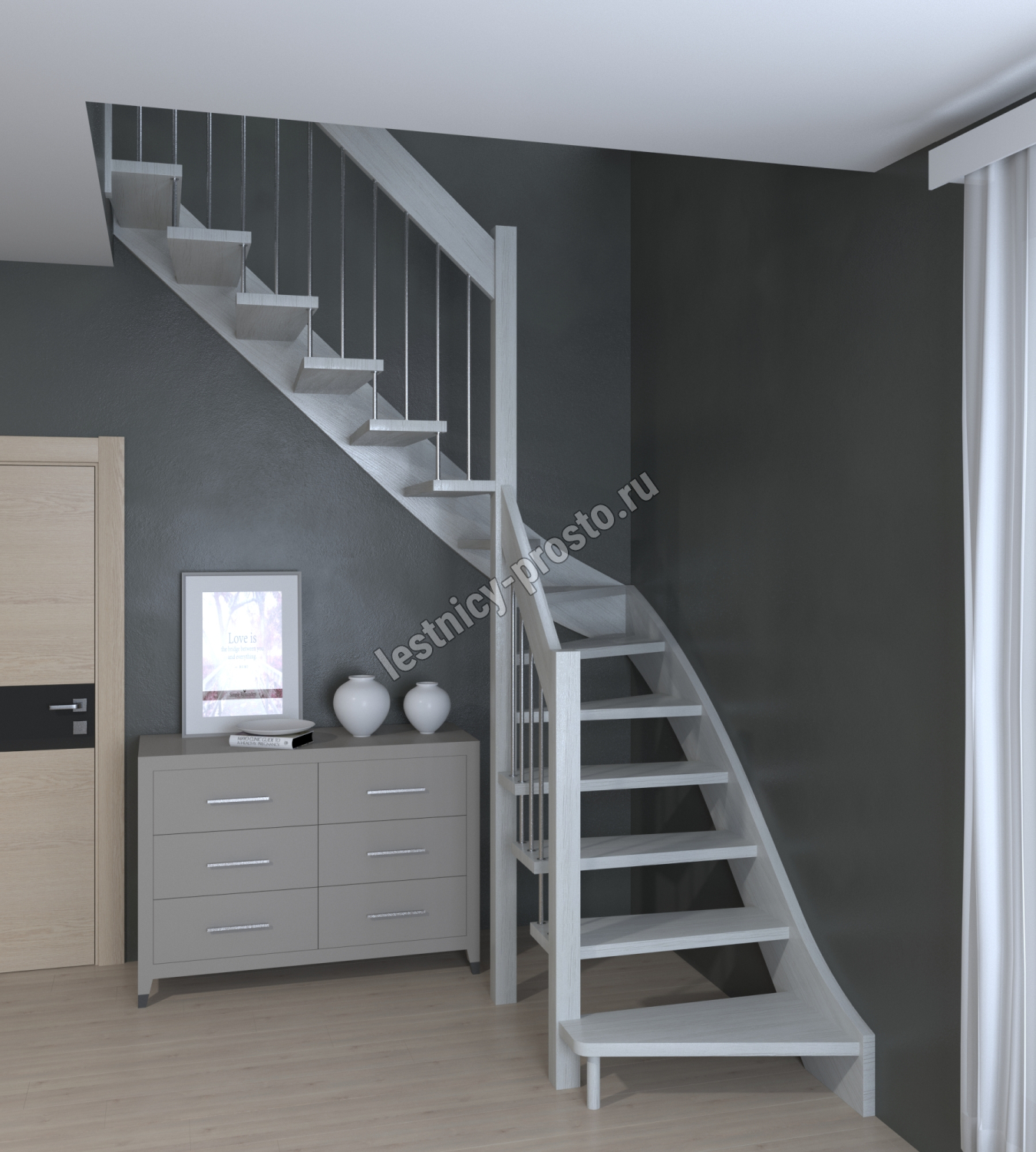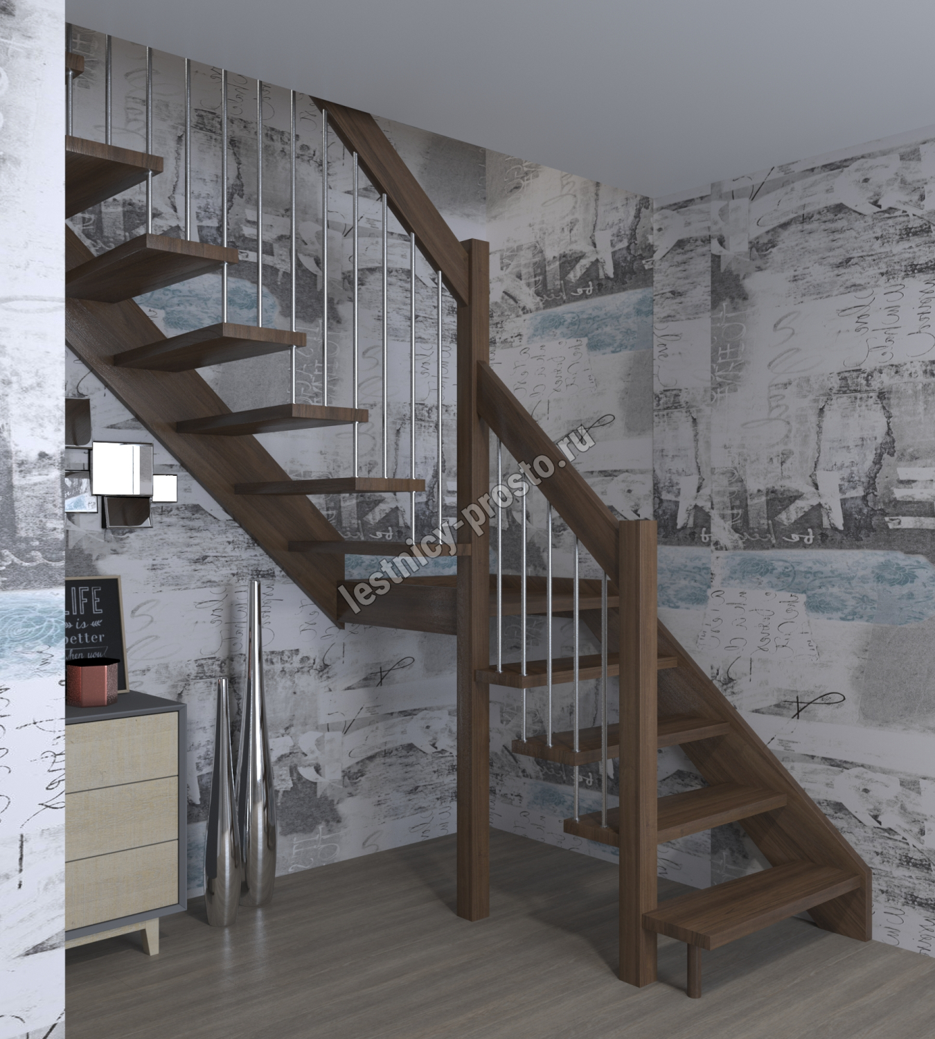 Лестница Prosto Console г-образная забежная бук, h292.5 см (12 ступеней)