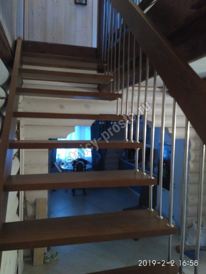 Надёжная современная лестница выполнена по немецкой технологии. Стоимость указана для лестницы с ограждением (с одной стороны); Поставляется в разобранном виде, в комплекте необходимый крепёж; Лестницу можно собрать самостоятельно; Так же, вы можете заказать услугу монтажа нашими специалистами; 4 вида породы дерева для изготовления лестницы: сосна, бук, ясень, дуб; возможна комбинированная лестница: из сосны (ступени бук, ясень, дуб); Деревянные элементы без какого-либо покрытия, отшлифованы, готовы к покраске. За дополнительную плату, вы можете изменить любые параметры, а именно: увеличить глубину ступени; увеличить ширину марша до 900 мм. и выше; заказать подступенки к лестнице; заказать отделку перекрытия (между 1-м и 2-м этажами); изготовить дополнительный промежуточный марш; заказать ограждение 2-го этажа; покраска в любой цвет или несколько цветов или покрытие защитными средствами; дополнение балясины из нержавеющей стали деревянными элементами; покраска балясин из нержавеющей стали порошковой краской в цвет RAL.
