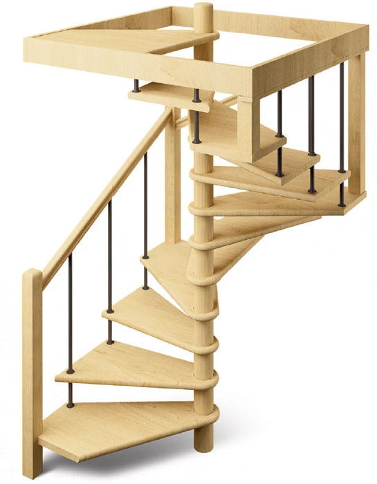 Базовая комплектация включает в себя деревянные элементы лестницы без какого-либо покрытия