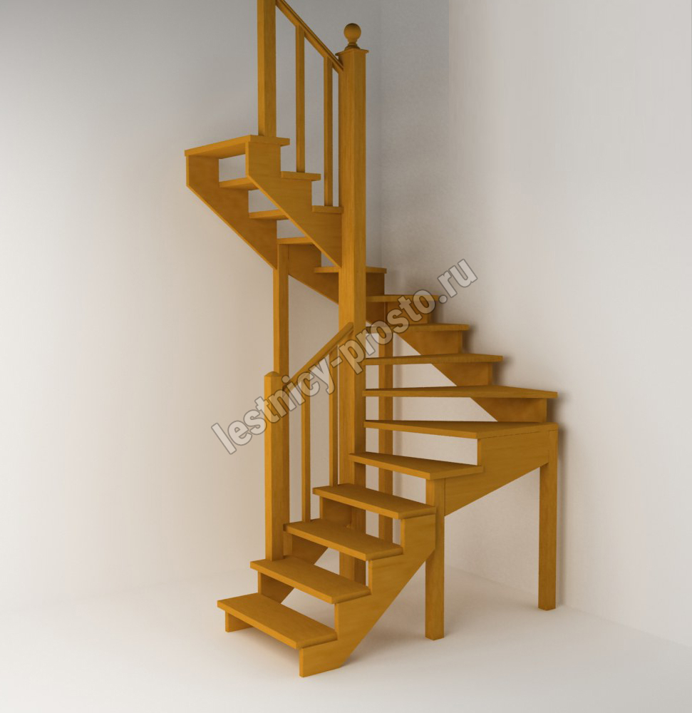Лестница изготавливается под заказ. Возможны варианты подходящие под необходимые размеры проёма. Базовое ограждение можно заменить на кованое или точеное. Лестницу можно дополнить подступенями, бортиками, миниподступенями. Первую ступень можно заменить на пригласительную - лекальную. Классическая модель поворотной лестницы раскрывает всю природную красоту натуральных материалов. У лестницы комфортная высота шага, удобный широкий марш и угол подъема. Указана стоимость лестницы без какого-либо покрытия.