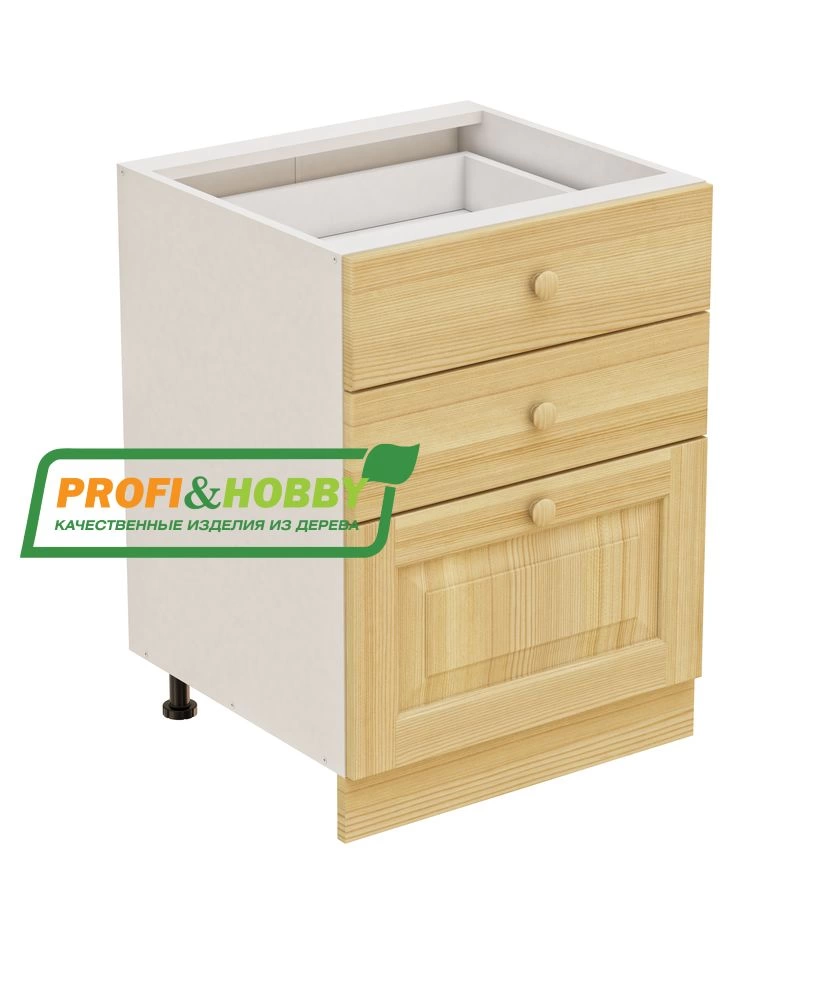 Тумба 3 ящика 600х530х720 + фасад сосна бесцветный акриловый лак