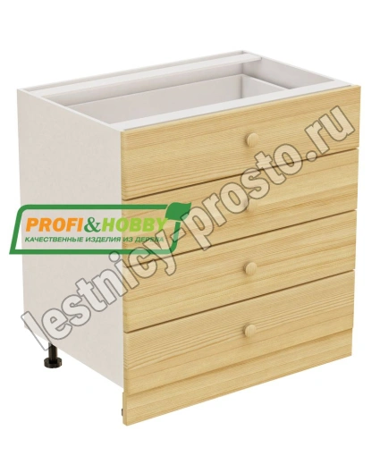 Тумба 4 ящика 800х530х720 + фасад сосна бесцветный акриловый лак