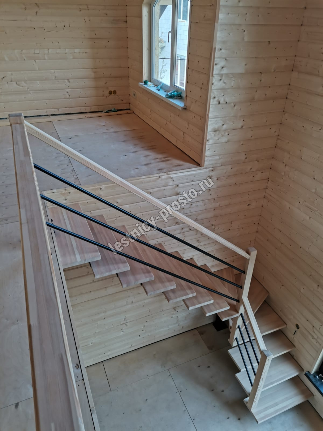 Лестница PROSTO MONO STEP TRINITY г-образная забежная, ступени лиственница с ограждением