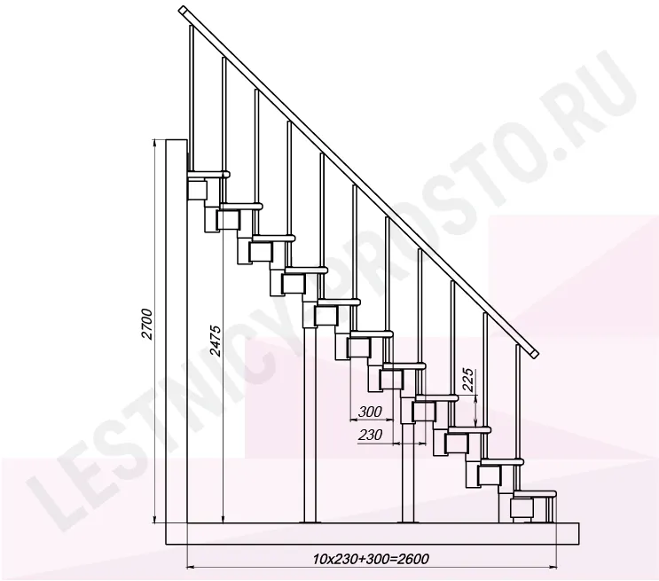 Высота лестницы 2475 - 2700 (11 ступеней) мм