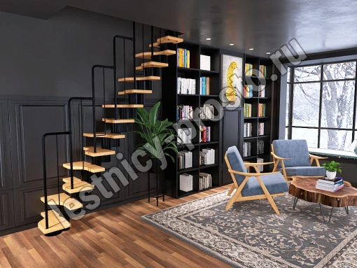 Лестница Prosto Urban Black гусиный шаг 700 мм, h198-288 см (11 ступеней), дуб