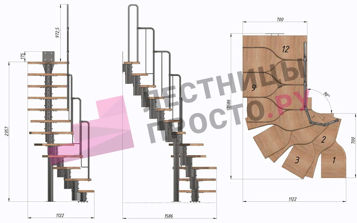 Высота лестницы 2160 - 3120 (12 ступеней) мм