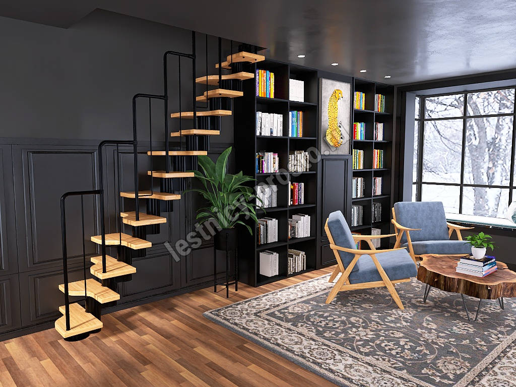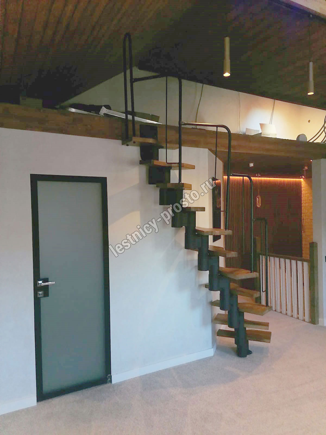 Лестница Prosto Urban Black гусиный шаг 600 мм, h198-288 см (11 ступеней), бук