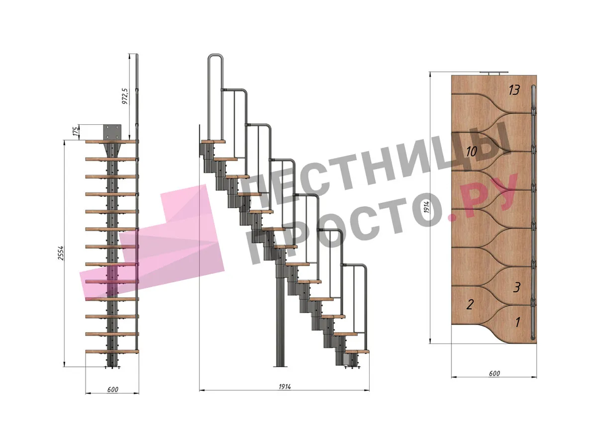 Лестница Prosto Urban Black гусиный шаг 600 мм/ Ступени из берёзы мультиплекс