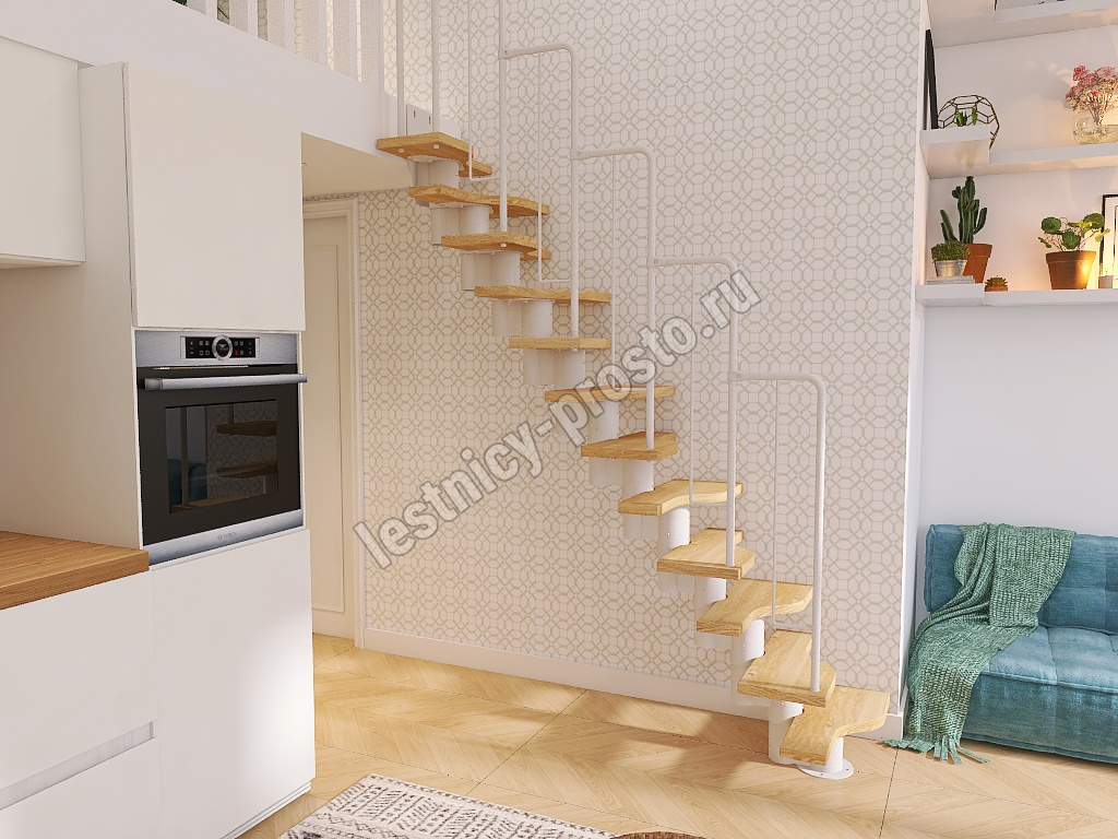 Лестница Prosto Urban White гусиный шаг 600 мм, h198-288 см (11 ступеней), ясень