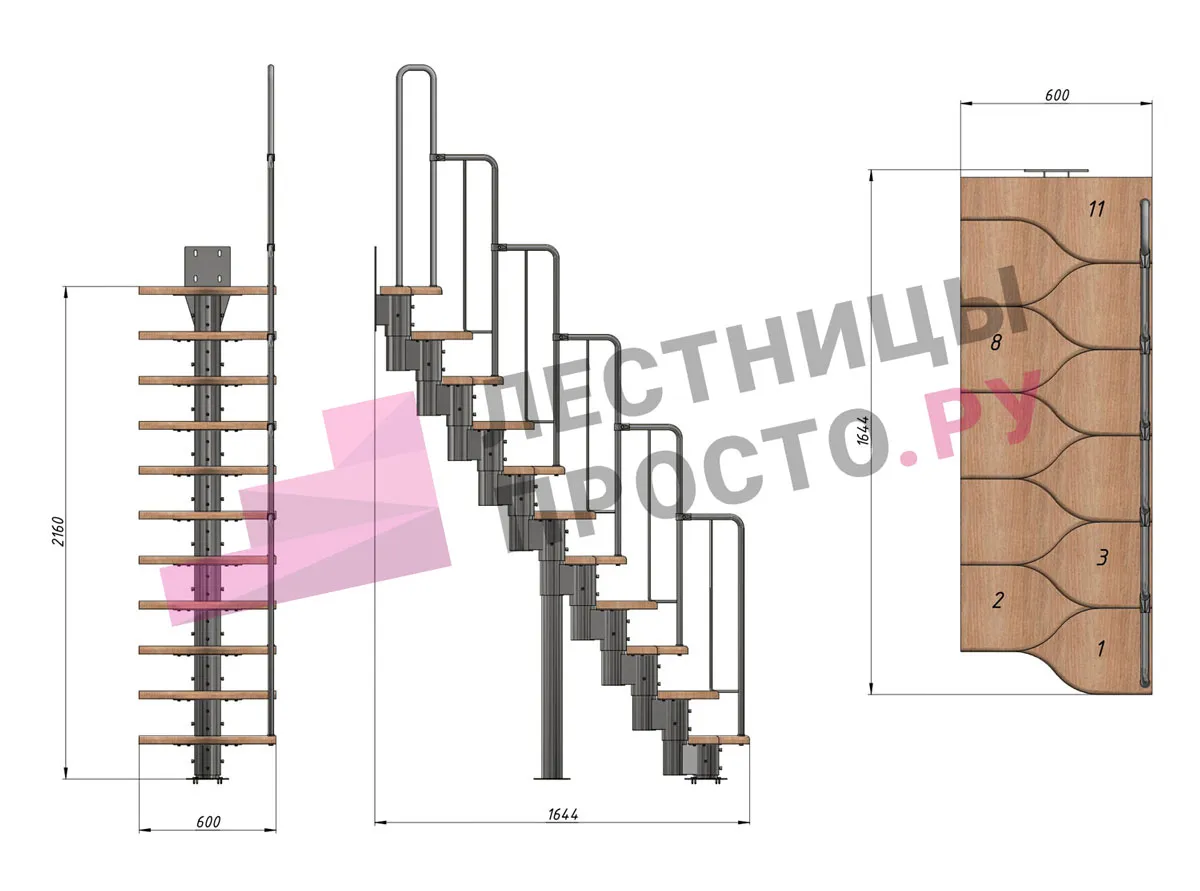 Высота лестницы 1980 - 2880 (11 ступеней) мм