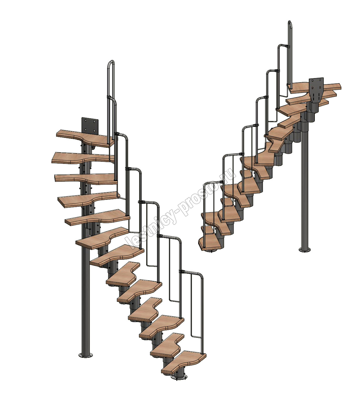 Лестница Prosto Urban White гусиный шаг 700 мм, h234-336 см (13 ступеней), бук