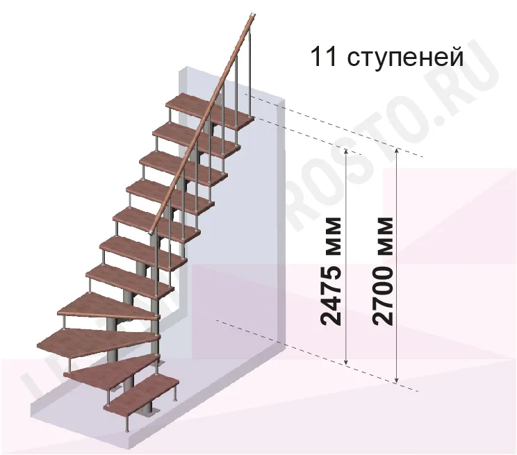 Модульная лестница PROSTO MODULE Г-образная/ h270 см