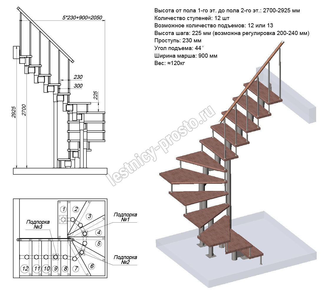 Схема и расчет указаны для шага 225 мм - мы рекомендуем эту высоту шага, как оптимальную для обеспечения комфортного подъёма и экономии бюджета.