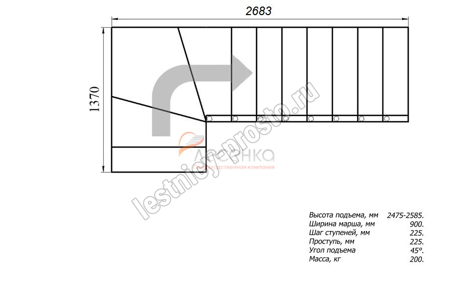 Модульная лестница Фаворит 225 2475-2585, Черный, Лиственница, Нержавеющая сталь