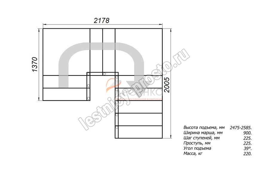 Модульная лестница Комфорт 225 2475-2585, Черный, Сосна, Крашеная, Без Ступений