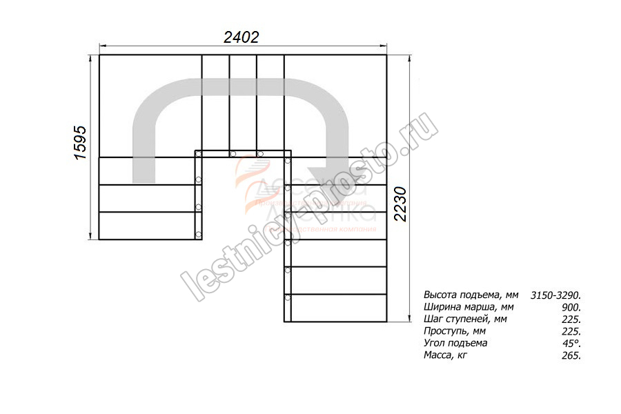 Высота лестницы 3150 - 3290 мм