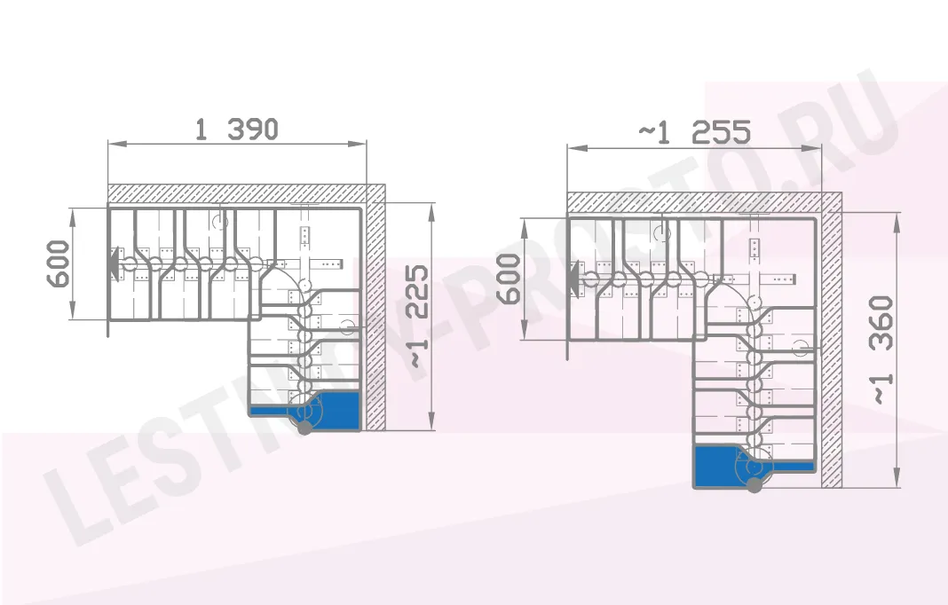 Форма лестницы Г-образная
