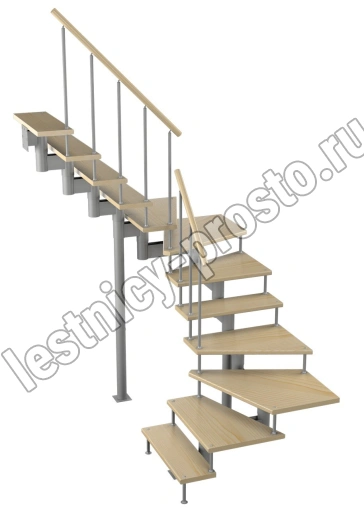 Модульная лестница Спринт 225 2700-2820, Серый, Лиственница, Нержавеющая сталь