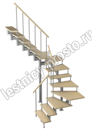 Модульная лестница Спринт 225 3150-3290, Серый, Сосна, Нержавеющая сталь