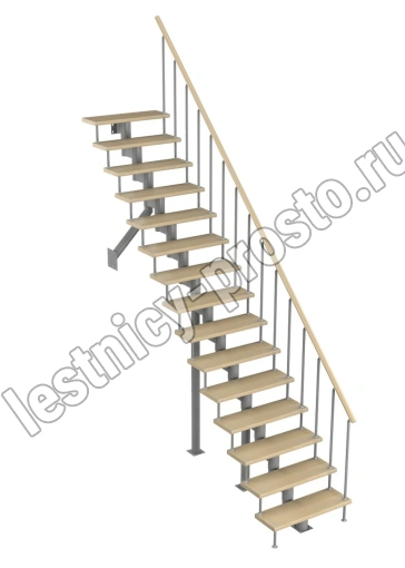 Модульная лестница Стандарт 3375-3525, Серый, Бук, Нержавеющая сталь