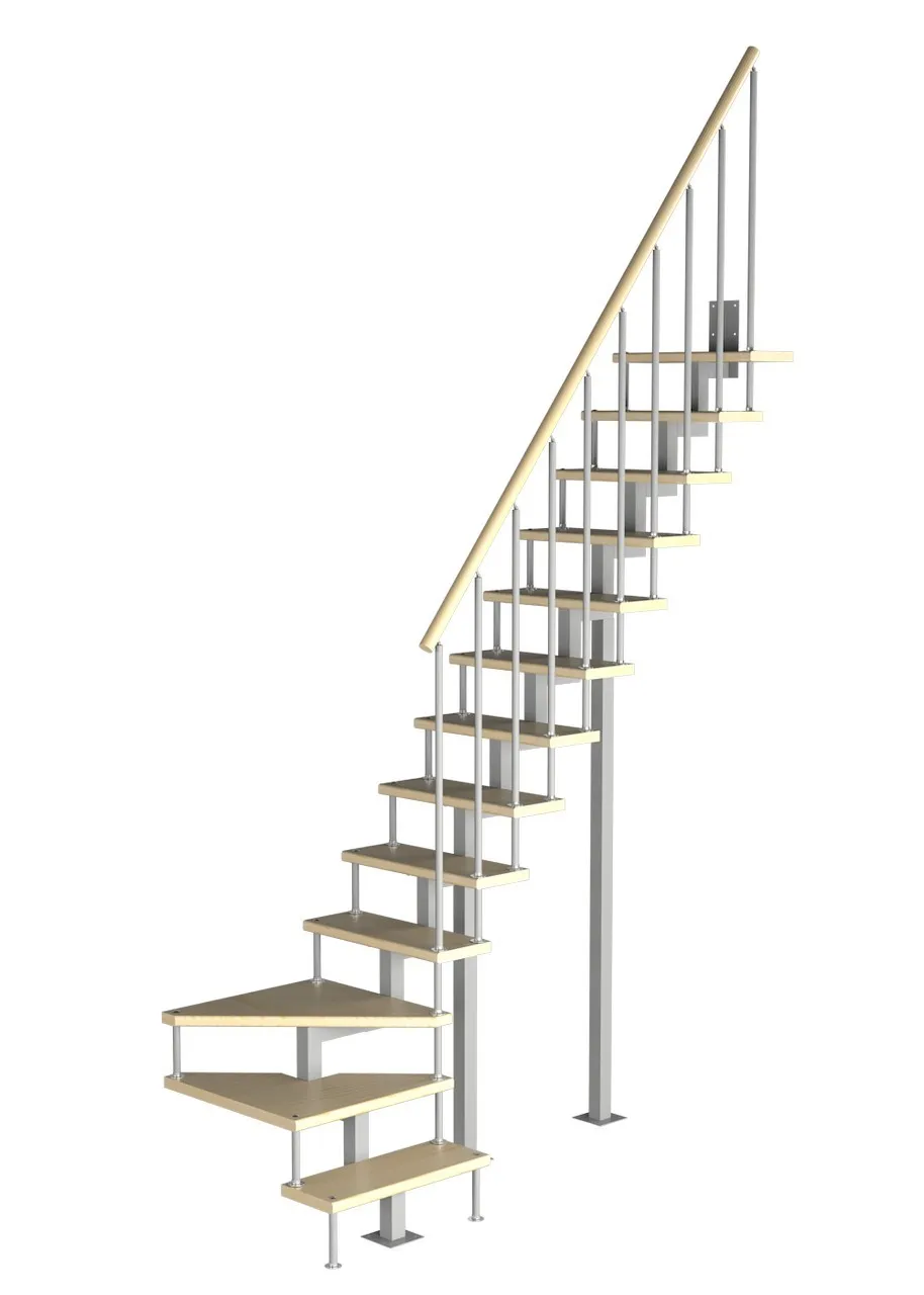 Модульная малогабаритная лестница Эксклюзив 2250-2475, Серый, Сосна, Крашеная, Без Ступений