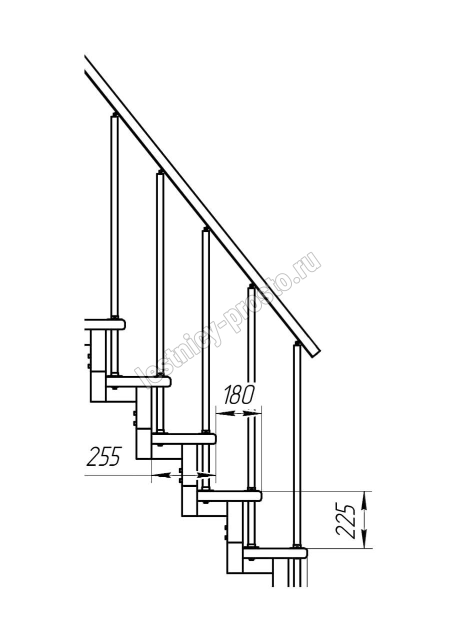 Модульная малогабаритная лестница Эксклюзив 2925-3150, Черный, Сосна, Крашеная, Без Ступений