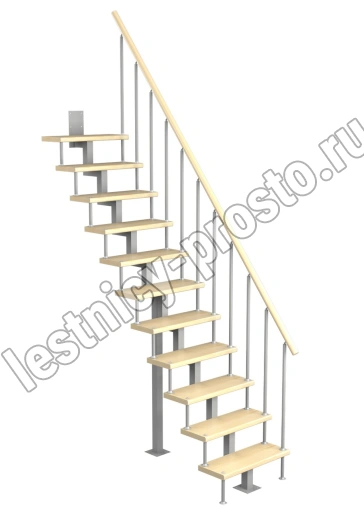 Модульная малогабаритная лестница Линия 2475-2700, Серый, Сосна, Нержавеющая сталь