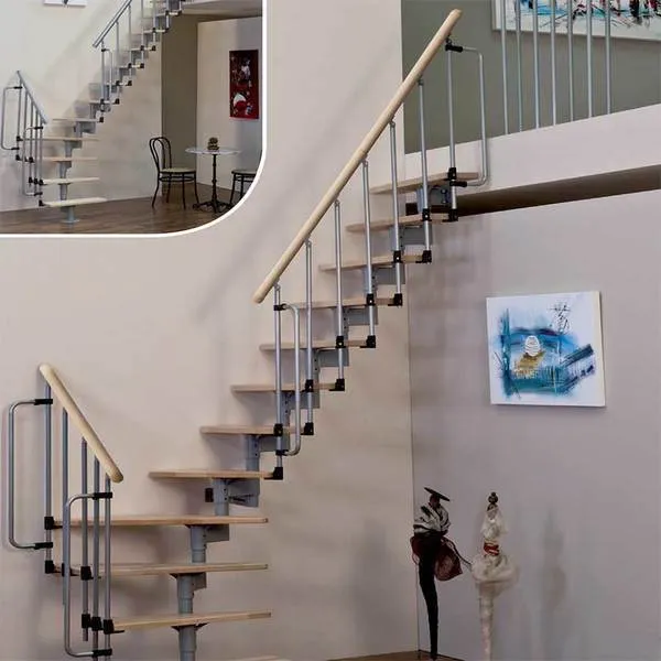 Перила состоят из стальных балясин, окрашенных в черный (RAL 9017), белый (RAL 9010) или серый (RAL 9006). Концы черные для черной лестницы и серые для серой и белой лестниц.
