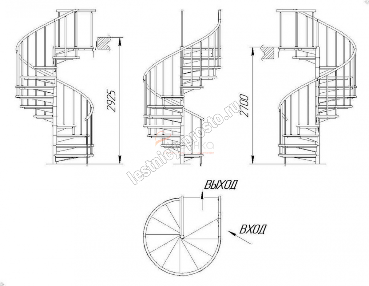 Винтовая лестница ЛЕС-1,8 высота 2700-2925, Серый, Лиственница
