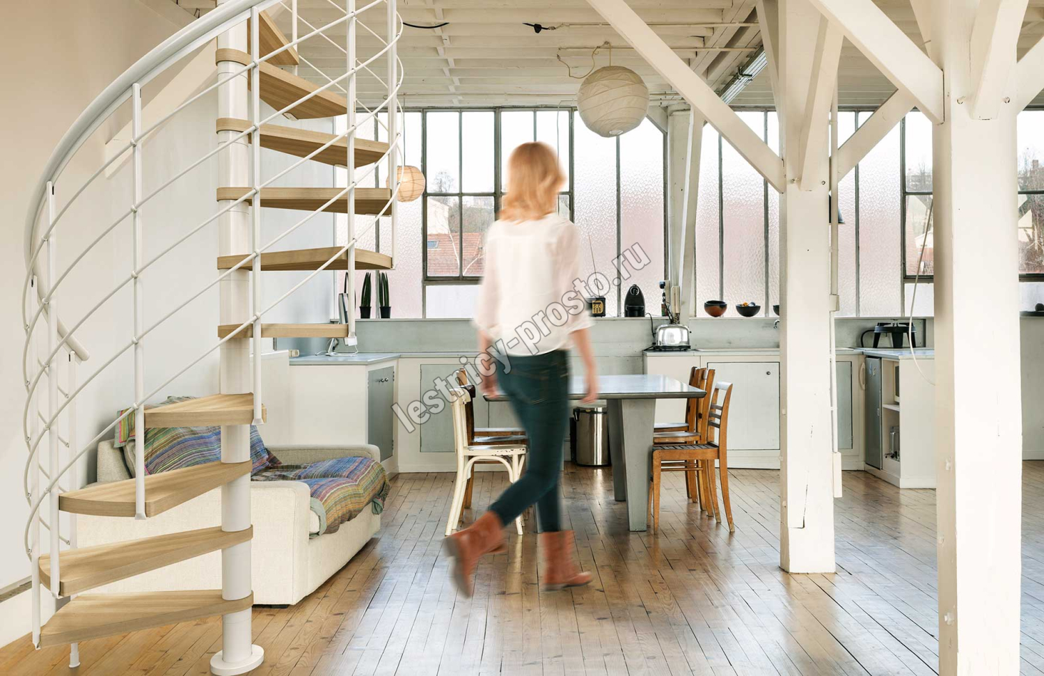 Винтовая лестница Montreal STYLE белая, d140 см, h322,5-352,5 см