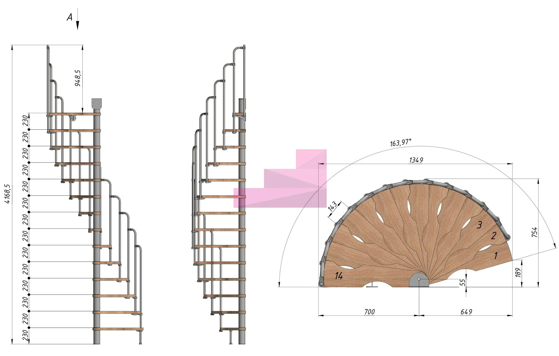 Винтовая лестница PROSTO MINI 70×140 см, h322-345 см